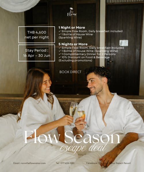 Enjoy a relaxing beachfront getaway at The Flow Samui Beach Resort with exclusive privileges when you book directly with us.